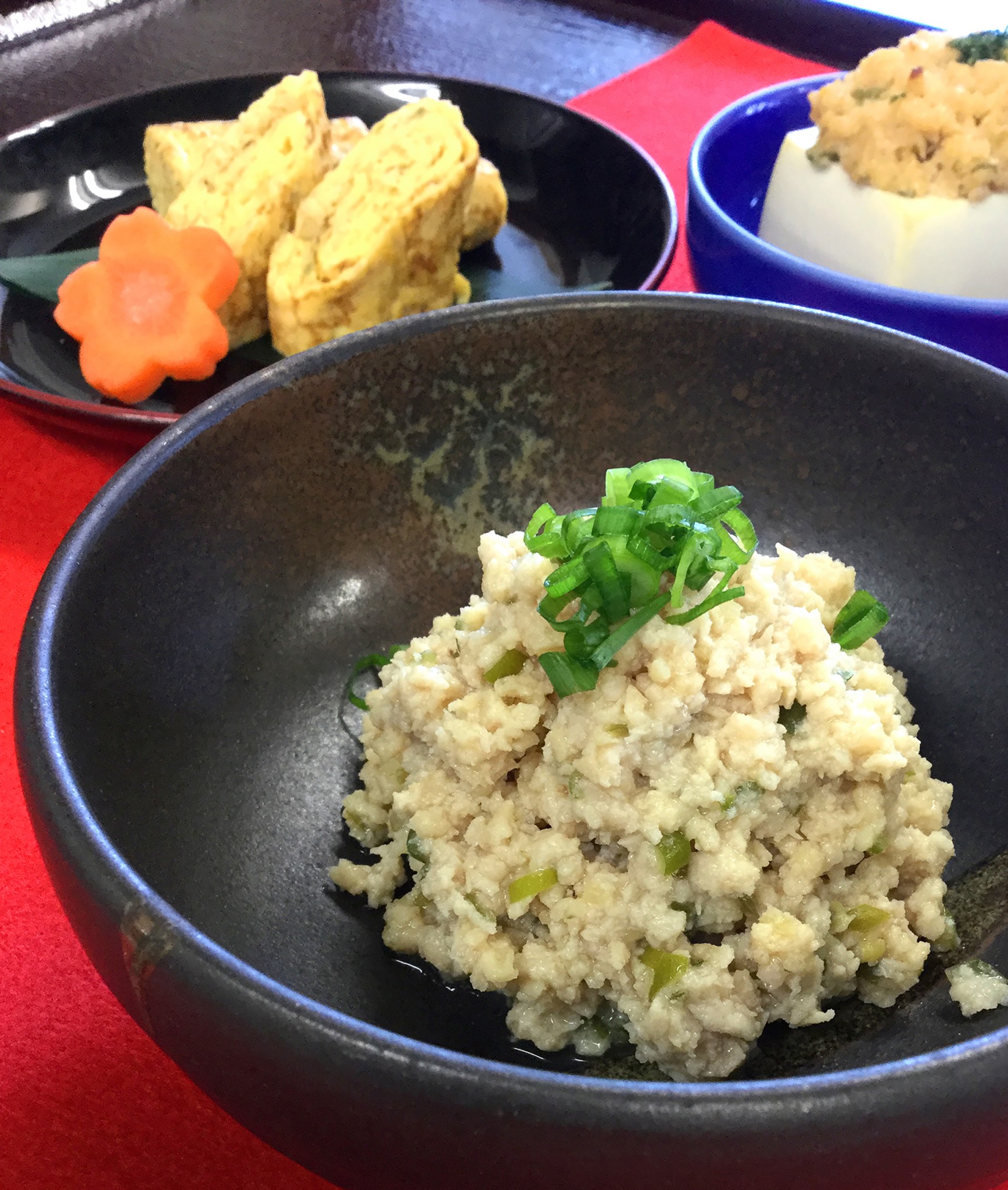 ごはんに玉子そぼろとともにもりつければ、そぼろ丼に。