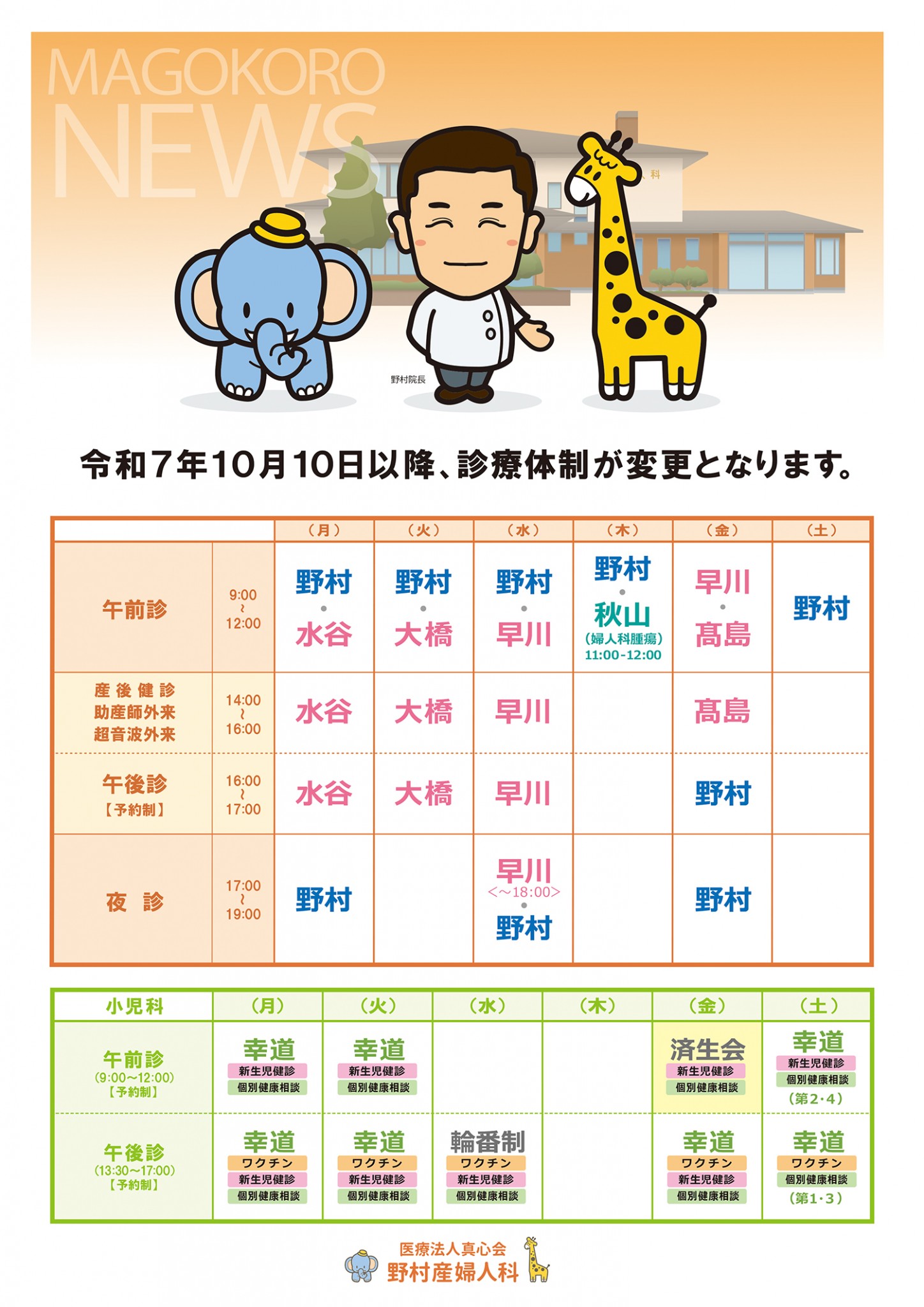 10月10日以降、診療体制が変更となります。