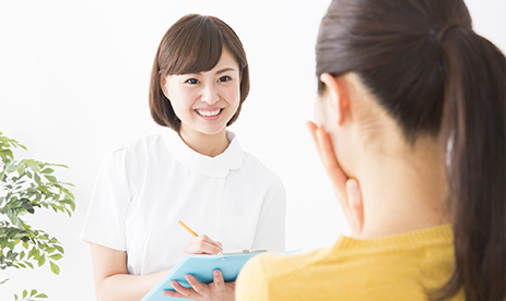 | 問 診 | 最近の身体の調子や病気に関する質問があります。 年齢、生理周期などの月経の状況、妊娠や分娩、授乳の経歴、家族にがんになった人がいるかどうか、これまで検診を受けたことがあるかどうか、受けていた場合にはどんな判定や診断であったかなどをお尋ねします。 |