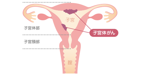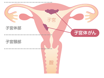 「子宮体がん」とは、子宮体部の内腔を覆っている子宮内膜(子宮の奥の方)から発生するがんです。