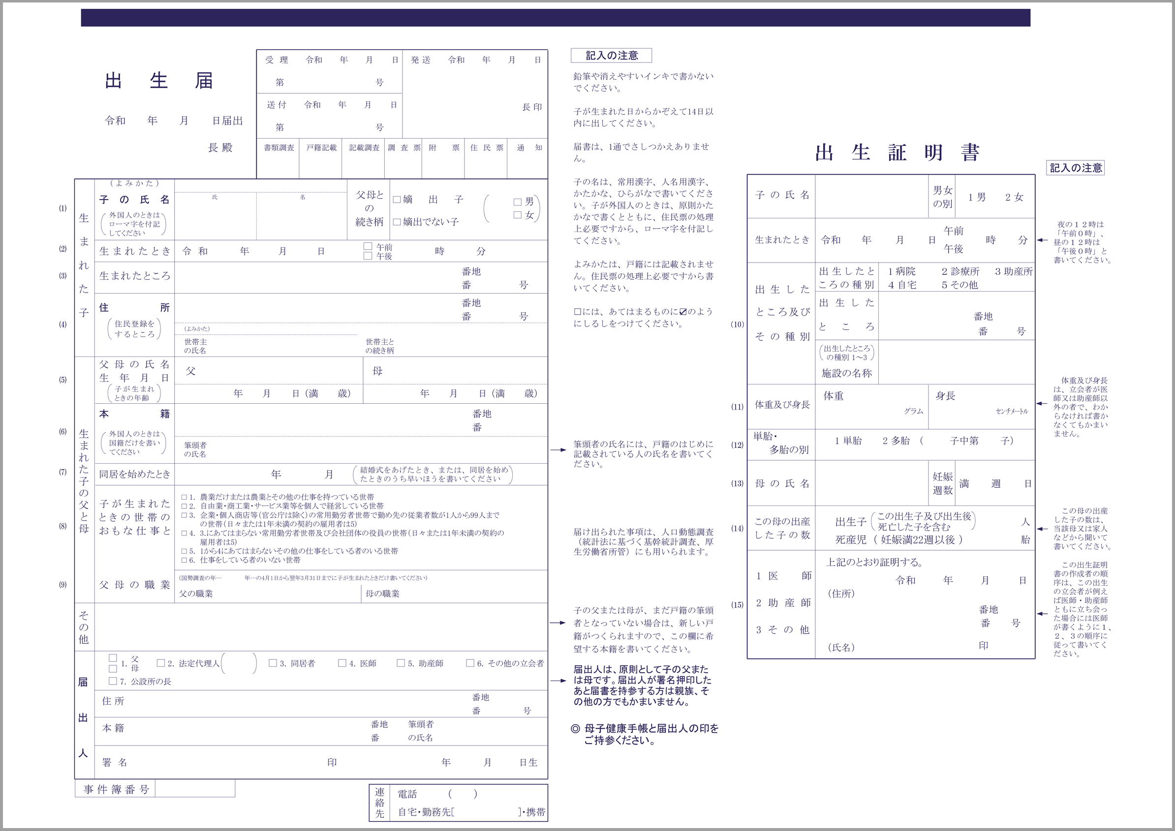 デザインは、記入ガイドが記載されている通常の届出用紙を含め全5種類をご用意しております。