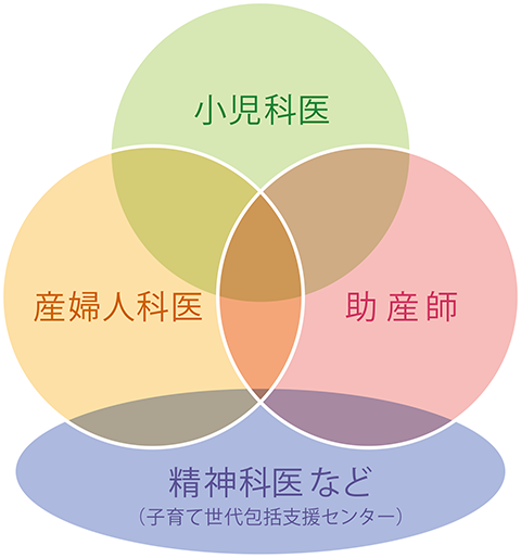 妊娠前期から分娩・産後、そして子どもがおとなになるまで、小児科医・産婦人科医・助産師、精神科医、